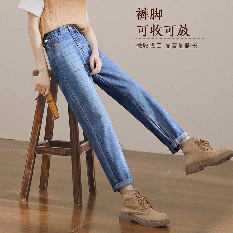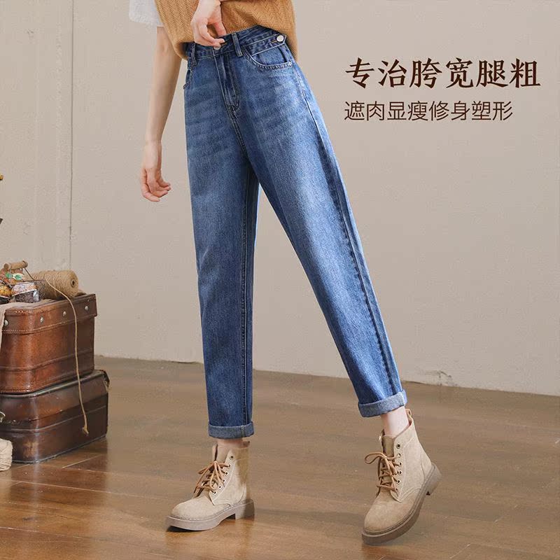 慕爱人牛仔裤女高腰宽松哈伦裤2021秋季新款九分显瘦老爹萝卜裤子