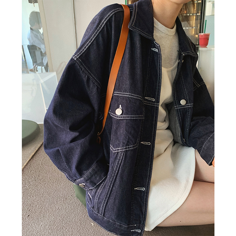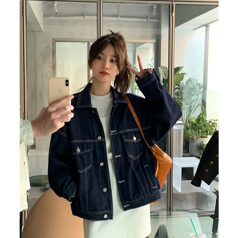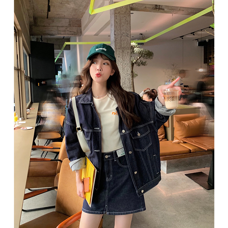 张秋大牛仔休闲套装女奕2021早时尚新款松百搭短款柔宽软撞色外套