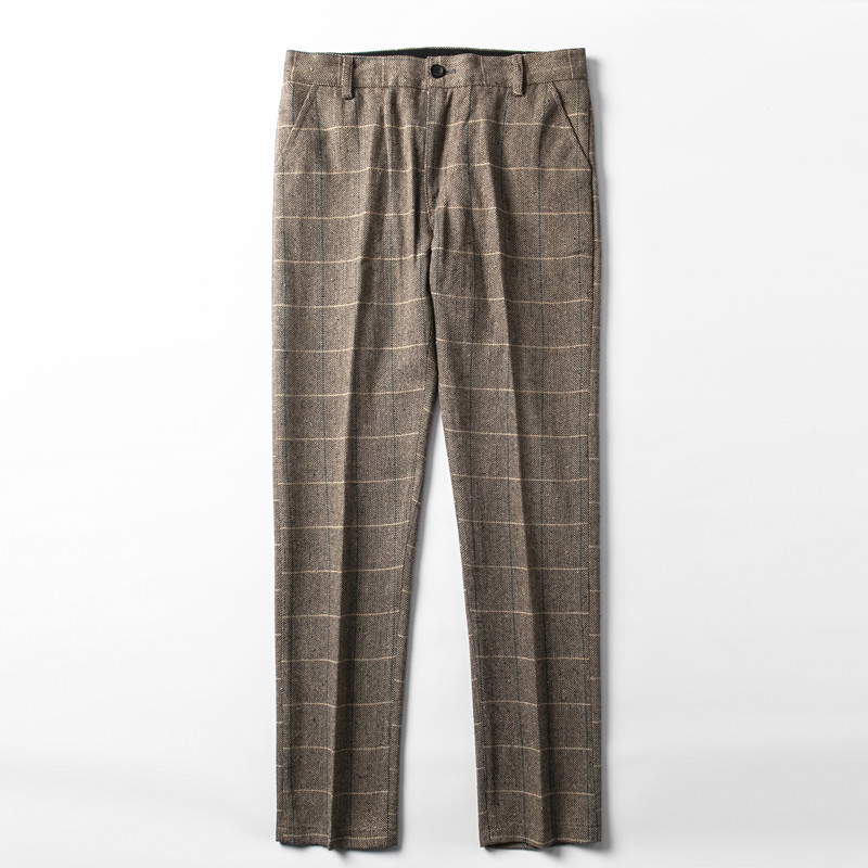 复古格子人字纹男裤修身小脚休闲西装裤羊毛呢粗纹潮裤胖子大码