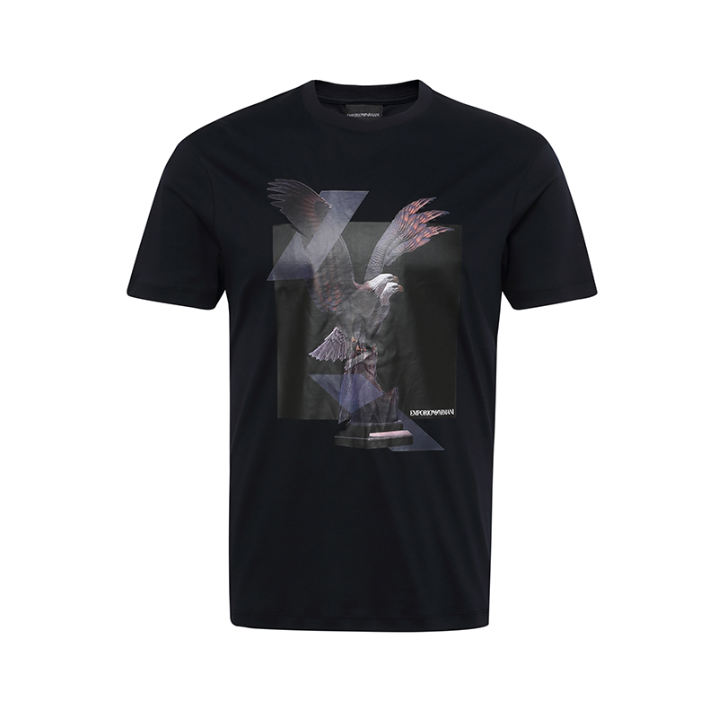 Emporio Armani/阿玛尼男士短袖黑色T恤小清新男体恤衫正品奢侈品