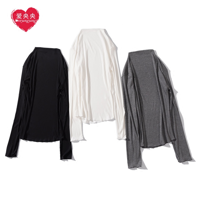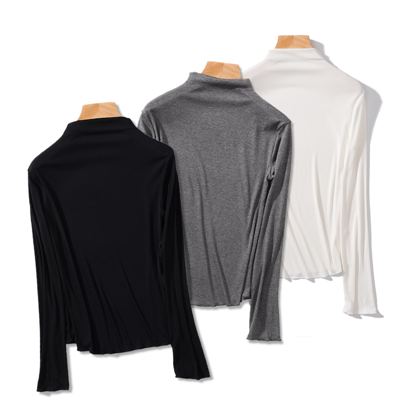 莫代尔螺纹高领半高领长袖t恤打底衫体恤衫上衣秋衣女夏春秋秋冬