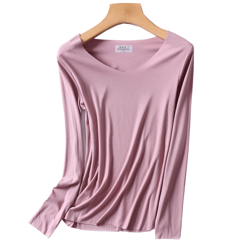 莫代尔女士v领黑色白色长袖打底衫t恤上衣秋衣女春秋薄款外穿内搭