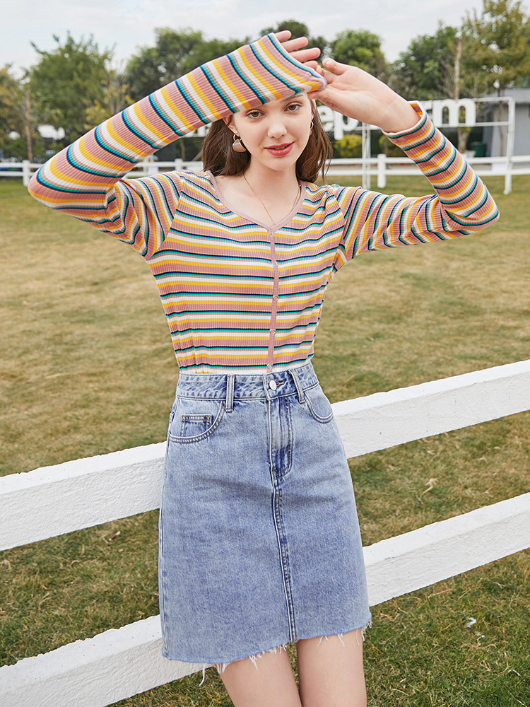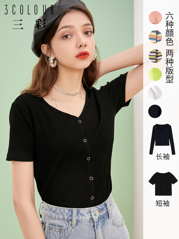 淘宝三 彩 正 品 折 扣 店优惠券,三彩2021秋装针织衫新款v领t恤优惠券,三彩2021秋装针织衫新款女装v领折扣清仓正品专柜3colour长袖T恤优惠券