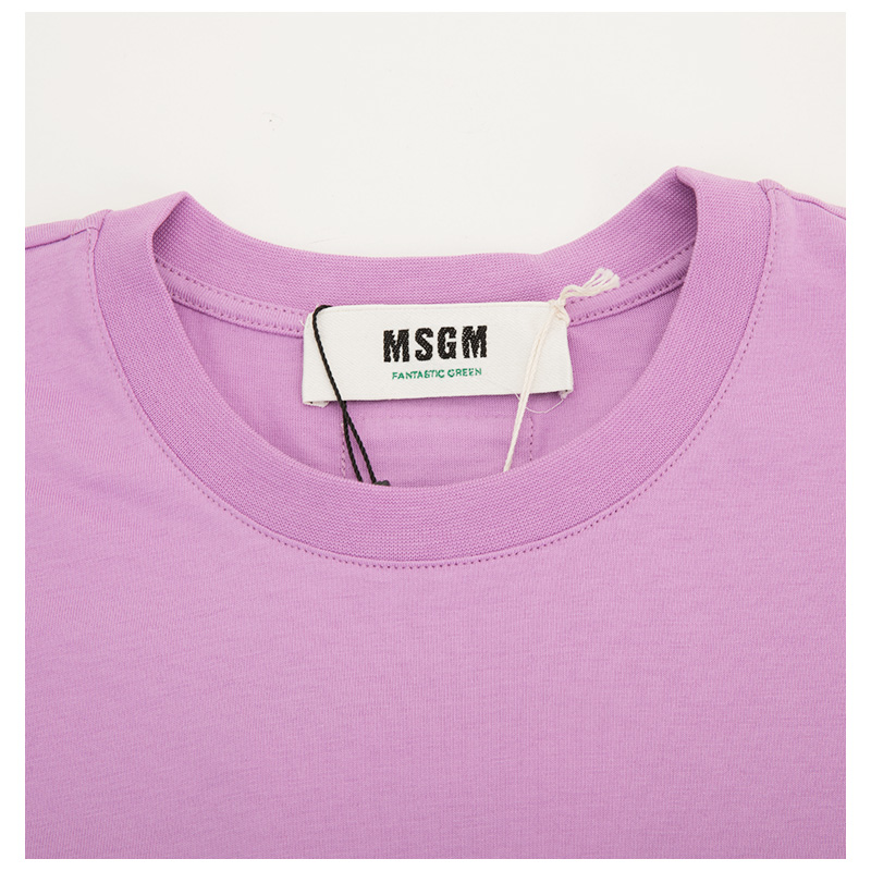 MSGM棉质纯色小字母装饰女士超短袖圆领休闲T恤