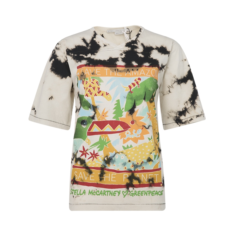 Stella McCartney米黄色抽象动物风景图案女士休闲短袖T恤