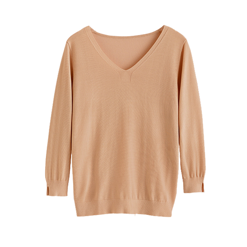 新款v领冰丝针织衫女七分袖毛衣女春秋季薄款上衣套头宽松打底衫