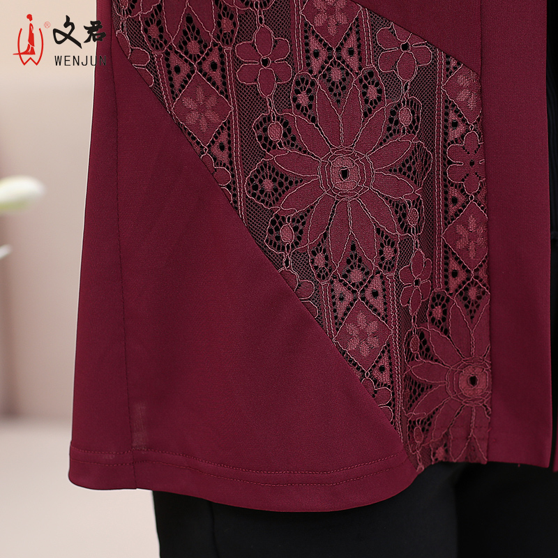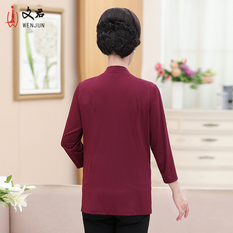 文君中老年女装夏季休闲枣红色开衫小外套40-50岁九分袖妈妈装