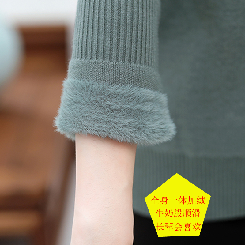 胖妈妈穿冬装水貂绒毛衣女加肥加大中老年女装高领加绒加厚打底衫