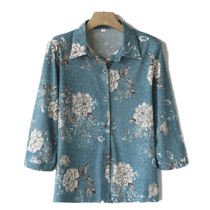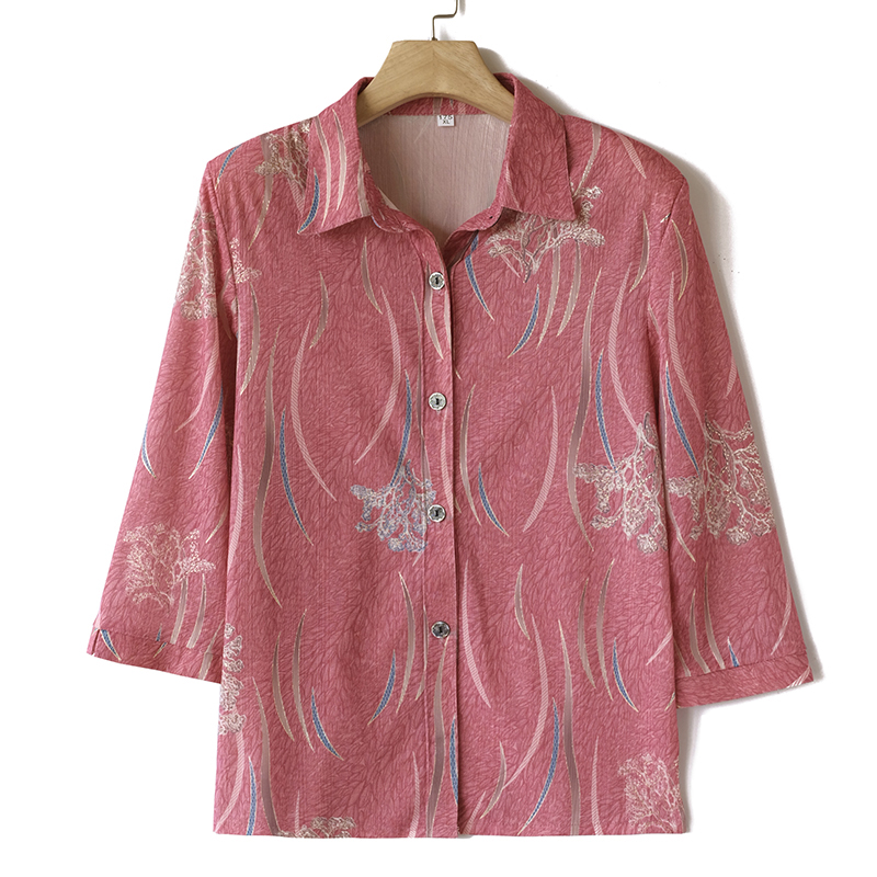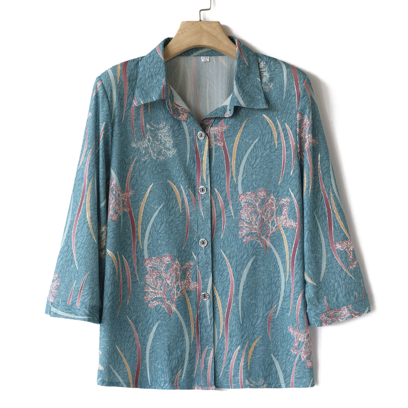 中老年女装夏装洋气中袖衬衫中年妈妈装春装中袖上衣奶奶长袖衬衣