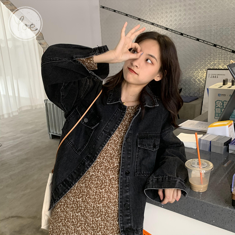 yoe黑色牛仔外套女韩版宽松百搭盐系2021秋季新款复古洋气短款