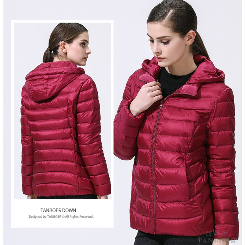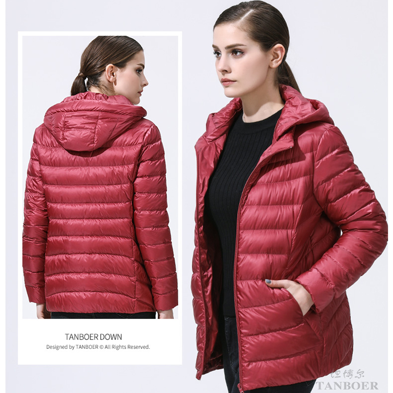坦博尔轻薄羽绒服女短款秋冬季妈妈款中老年人宽松大码可拆帽外套