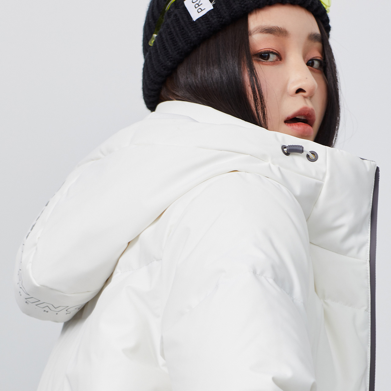 雪中飞2021秋冬新款时尚白色易搭大口袋女连帽抽绳加厚长款羽绒服