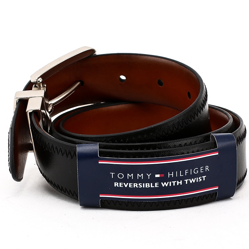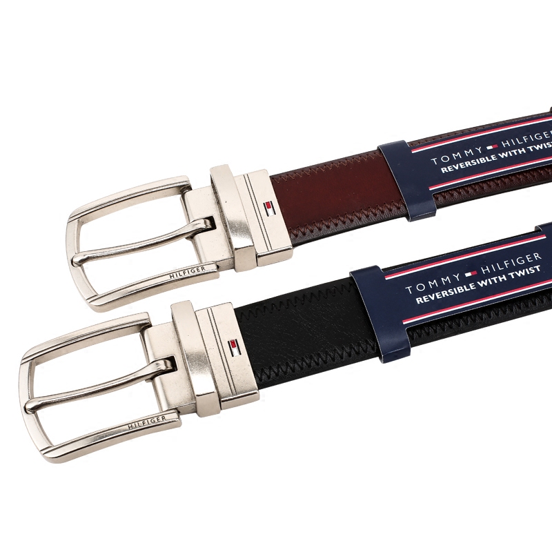 美国Tommy hilfiger汤米男士旋转扣商务双色男式针扣皮带窄裤腰带