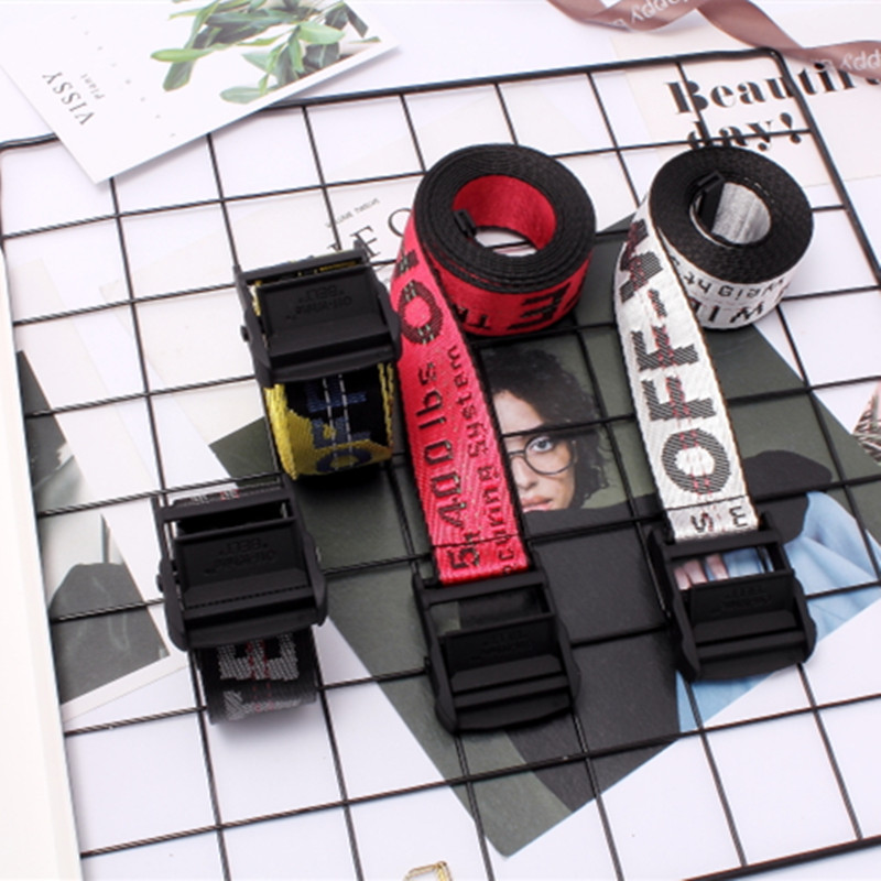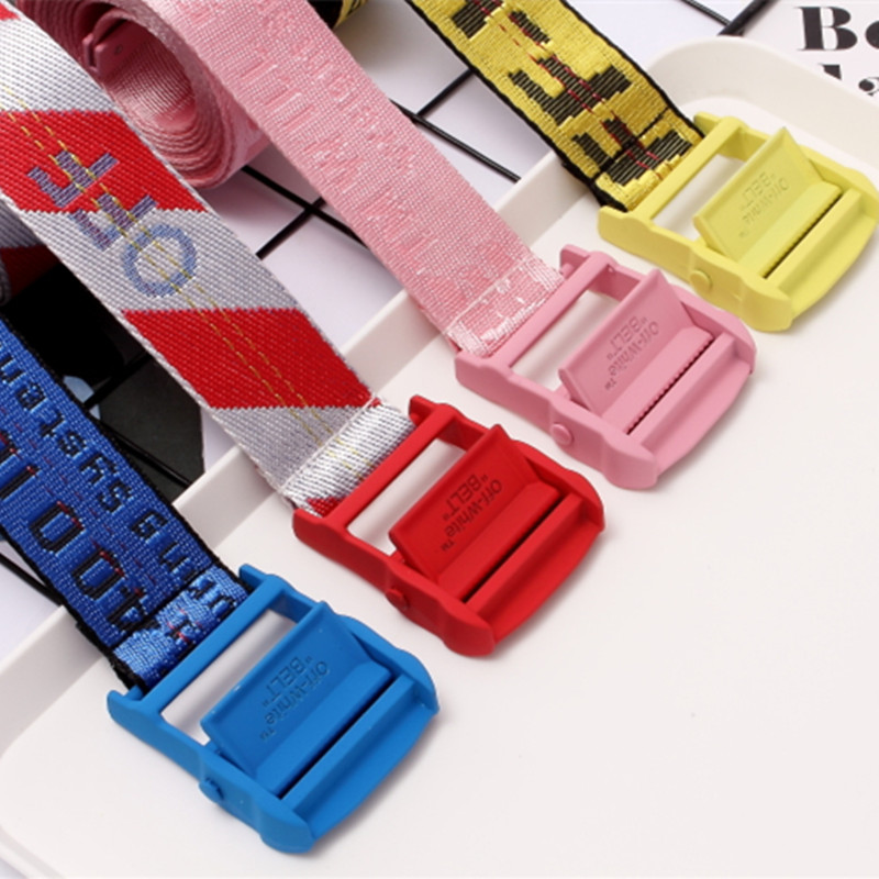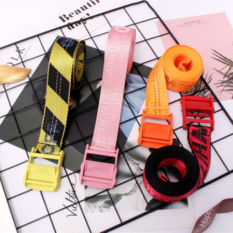 正确版本OFF 18SS OW黄色腰带 WHITE帆布刺绣透明黑皮带200cm美潮