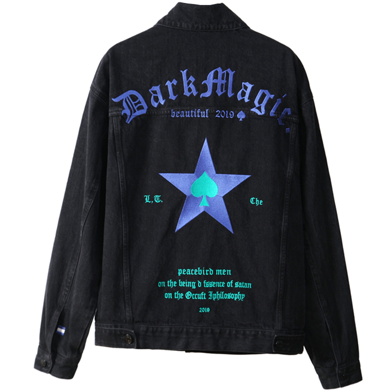 BIRD EAGLE PEACE春秋牛仔外套男翻领街头潮流刺绣牛仔夹克外套