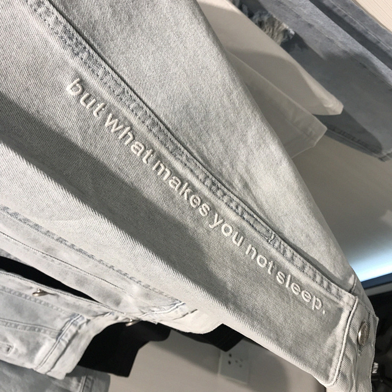 LOVE BIRD秋季男装PEACE潮牌时尚休闲浅蓝牛仔夹克外套B1BJ92602