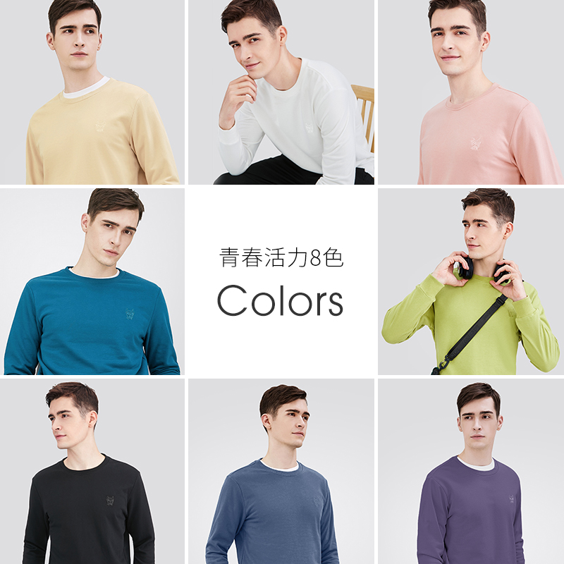 骆驼男装 2021春夏新款纯色套头圆领卫衣男韩版时尚百搭宽松长袖