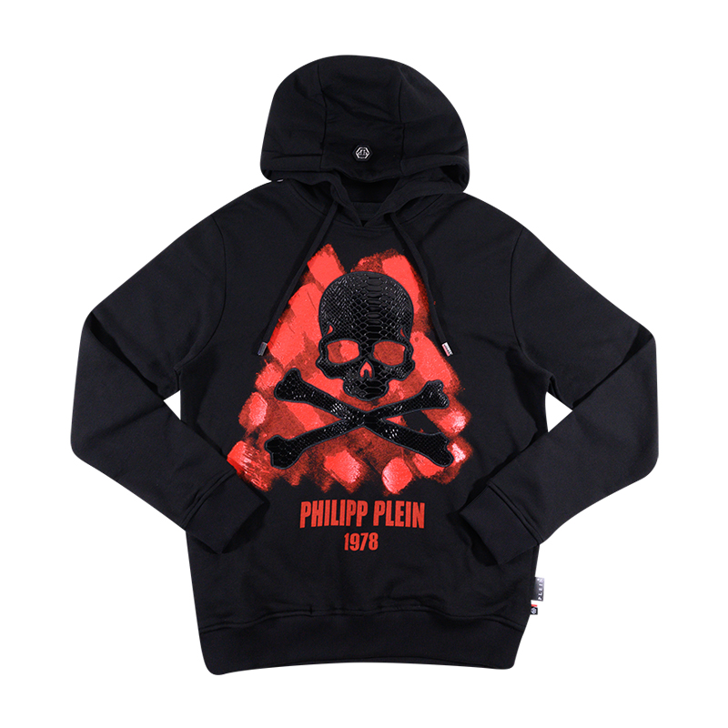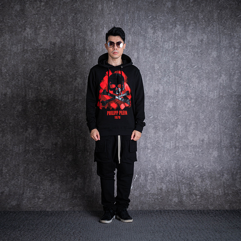 Philipp Plein菲利普.普兰时尚骷髅头休闲男士全棉连帽套头卫衣