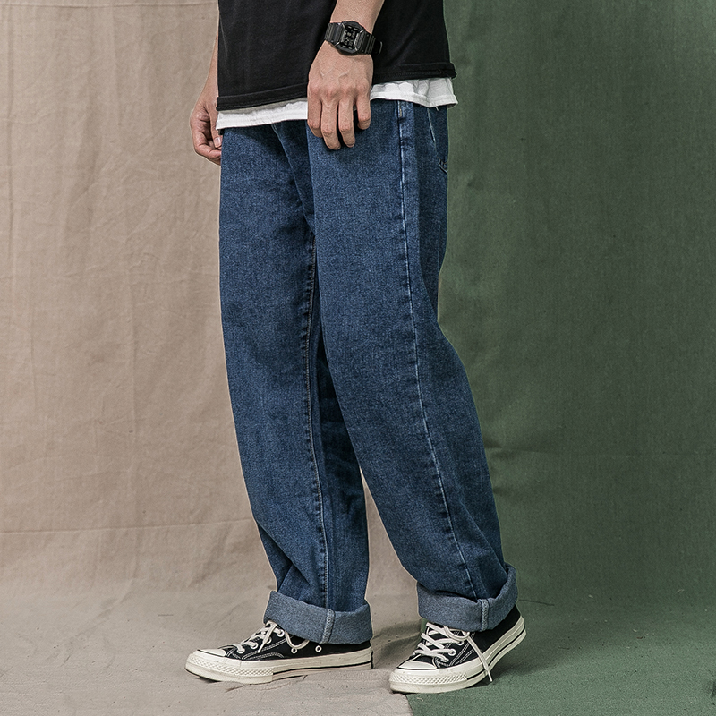 潮牌直筒牛仔裤男坠感阔腿裤宽松港风老爹裤九分百搭日系ins裤子