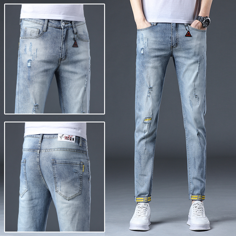 淘宝亿辰男装优惠券,春季浅色破洞男翻边九分裤潮牛仔裤优惠券,春季浅色破洞牛仔裤男翻边九分裤烂脚边潮牌修身弹力时尚小脚裤潮优惠券