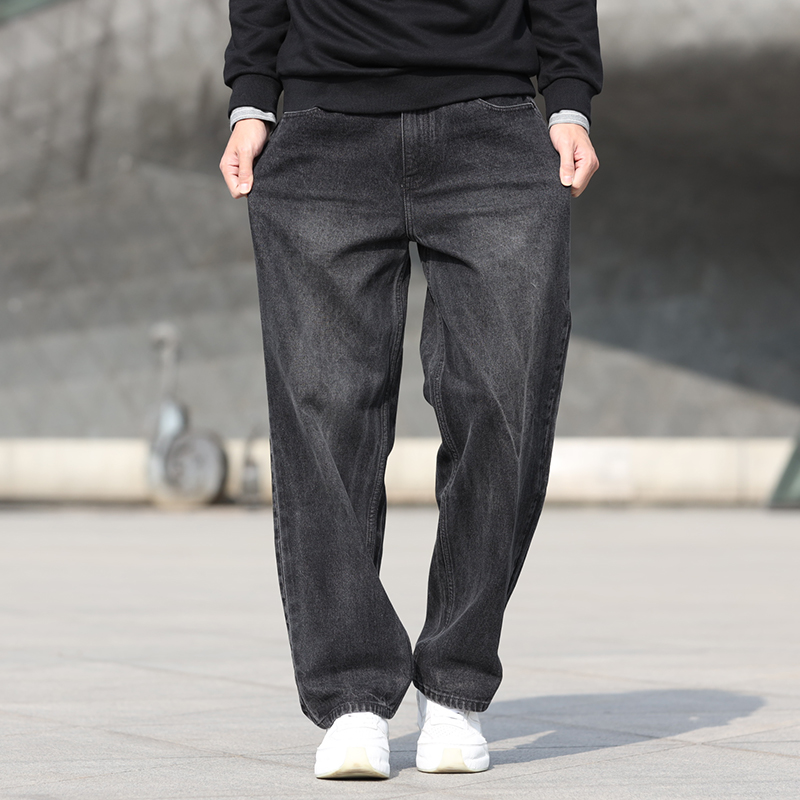 飞诺牛仔裤男直筒宽松阔腿老爹裤黑色高端加肥大码牛子裤潮春秋款