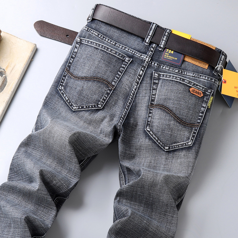 ENKOM LEE经典男士牛仔裤男直筒宽松弹力时尚韩版烟灰色休闲长裤