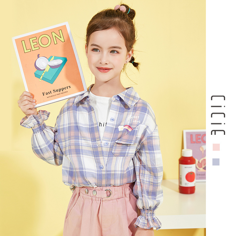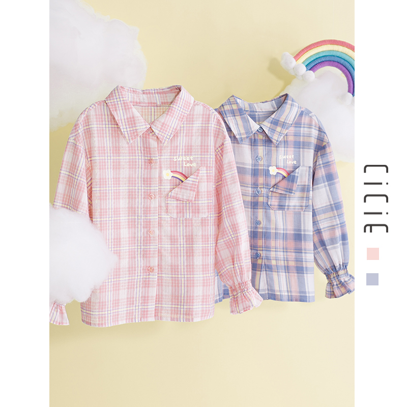 Cicie女童格子衬衫英伦风上衣衬衣纯棉儿童宝宝春秋装洋气时髦