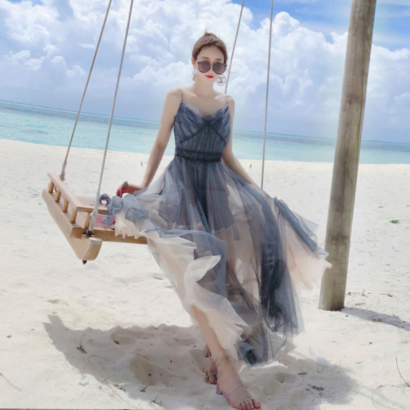泰国2021新款连衣裙沙滩裙女夏海边度假裙ins超火超仙长裙子网纱