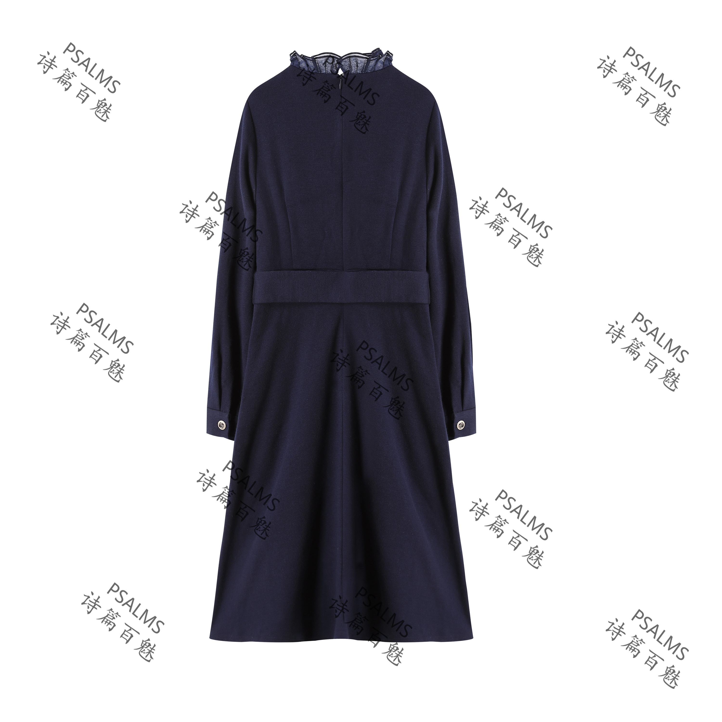 诗篇百魅国内代购2019冬季新商务木耳边系带收腰连衣裙6C59505490