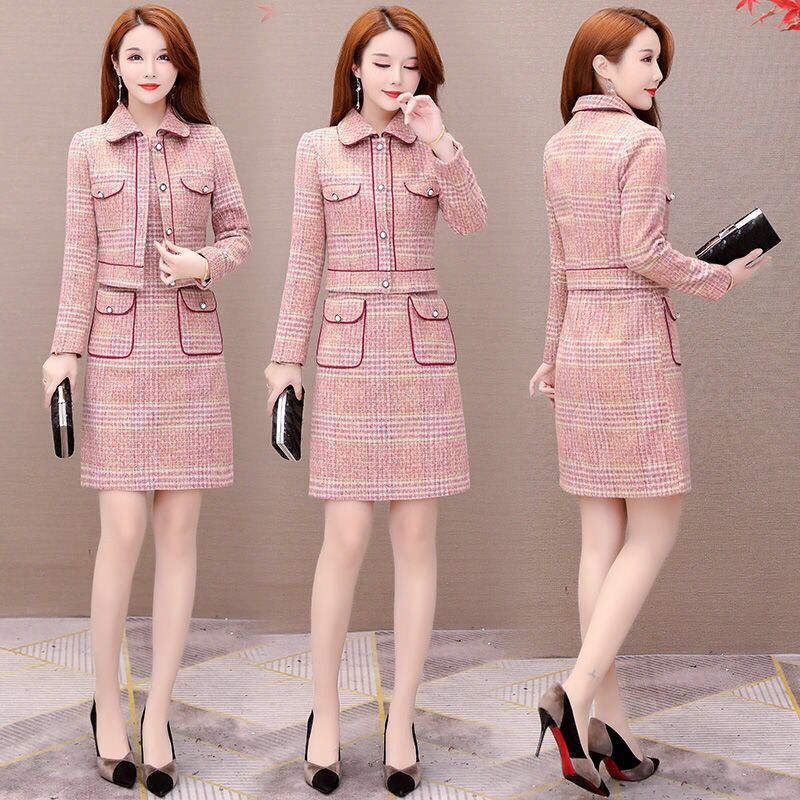 两件套连衣裙2021秋冬新款名媛小香风套装裙女人味初秋打底裙潮女