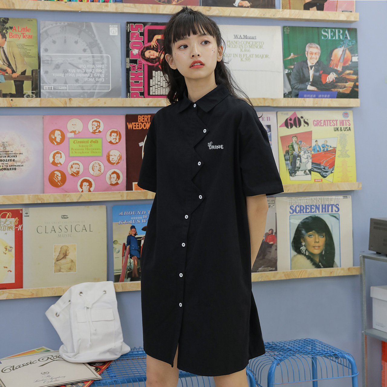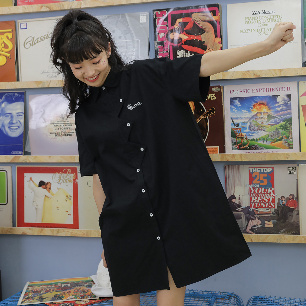 尔给衬衫裙夏小个子复古港味宽松学院风polo连衣裙港风小清新森系