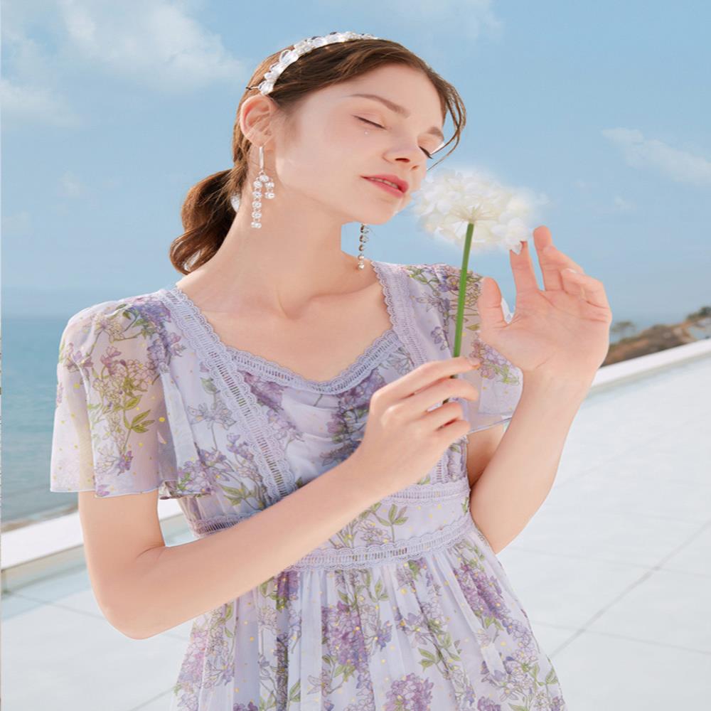 淘宝柠檬3号铺的小店优惠券,香影碎花女夏2021新款气质仙气紫色优惠券,香影碎花连衣裙女夏2021新款气质裙子仙气紫色方领雪纺海边度假裙优惠券