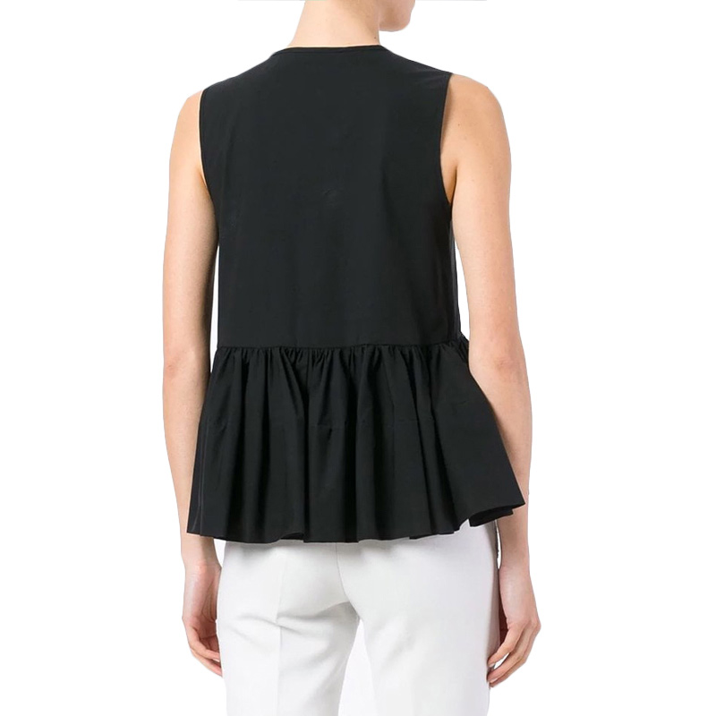 MSGM女士黑色深V字领无袖公主裙褶皱裙摆修身显瘦百搭短款连衣裙