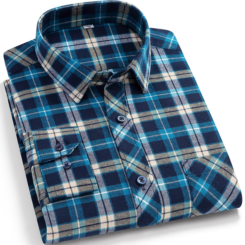 KIN DON/金盾春季纯棉格子长袖衬衫男全棉磨毛衬衣大码宽松爸爸装