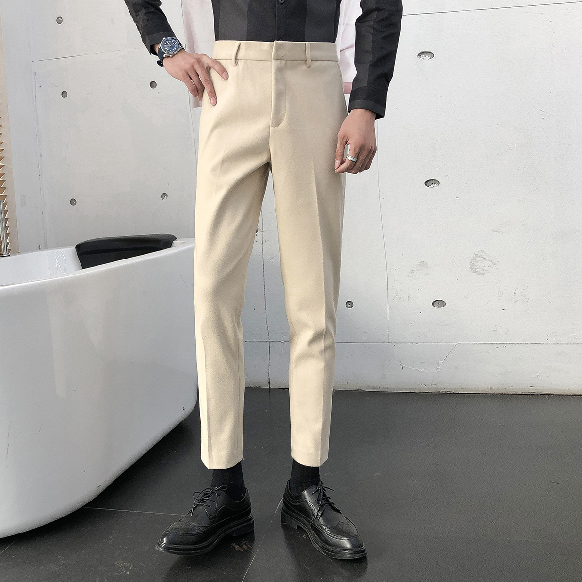 坠感西裤男韩版修身毛呢秋冬裤子男休闲英伦正装裤青年商务西装裤