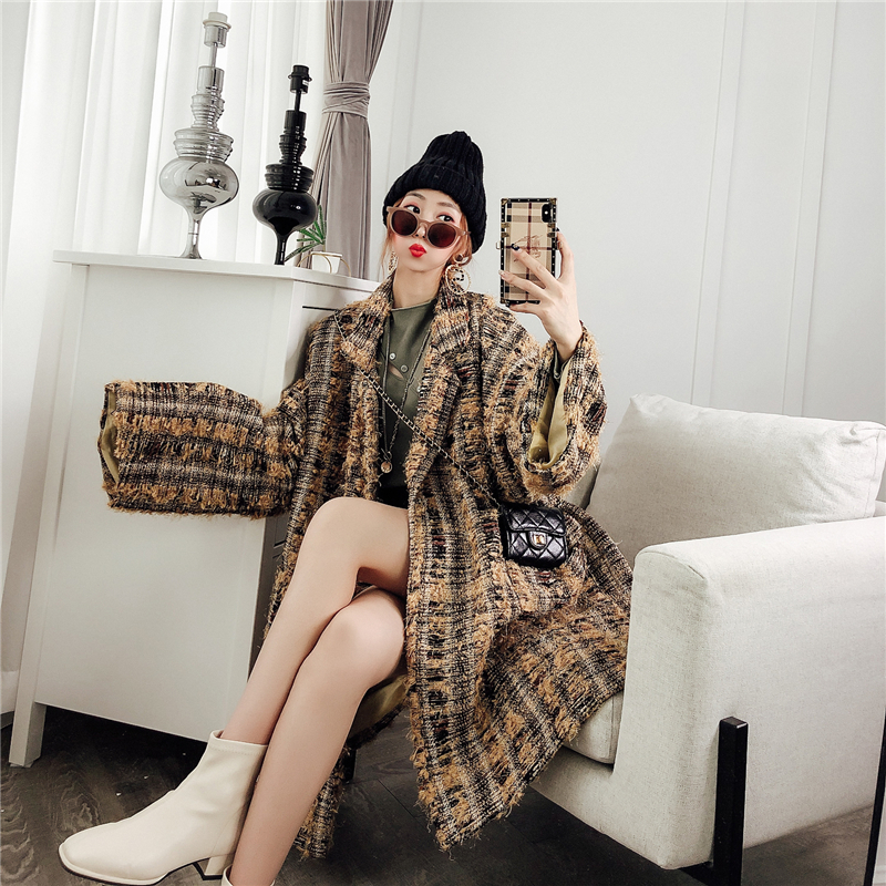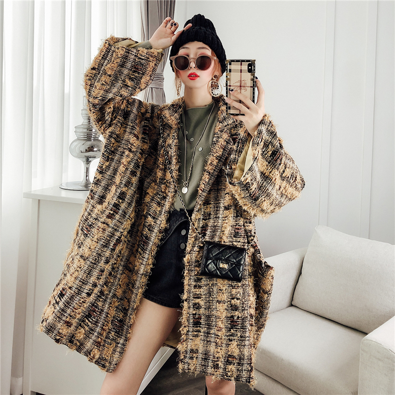 秋冬2021新款复古毛呢外套女中长款宽松显瘦大衣港味韩版西装风衣