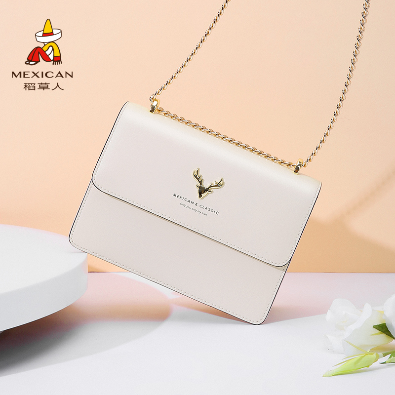 稻草人包包2021新款潮真皮单肩斜挎包时尚百搭质感女包小方包女夏