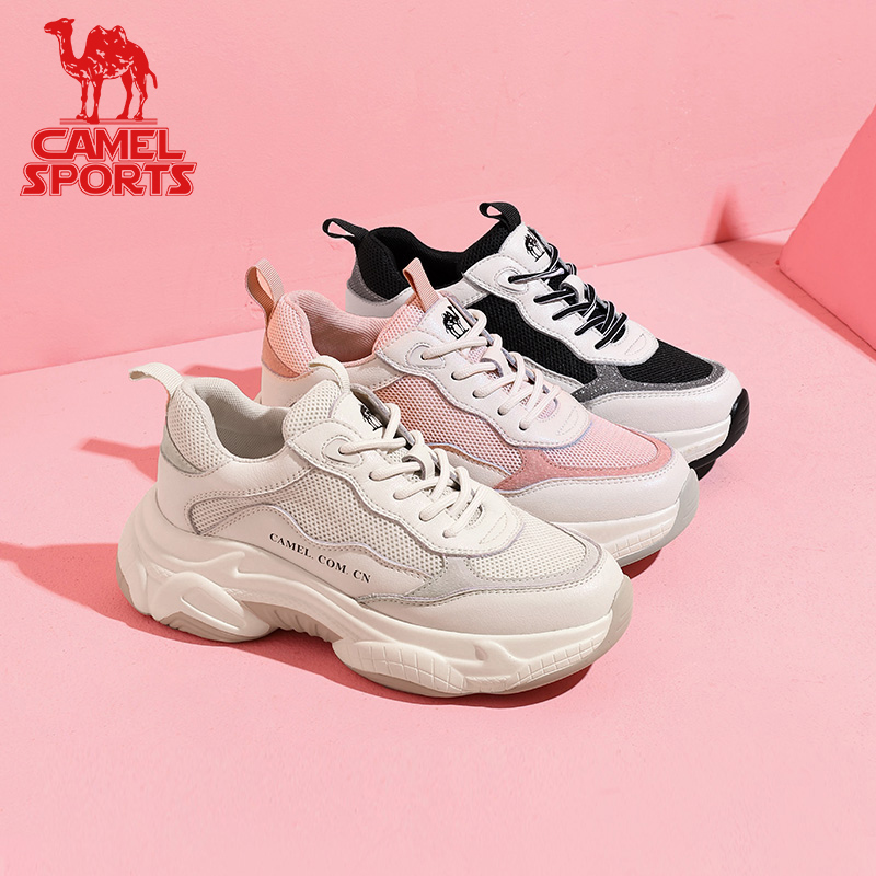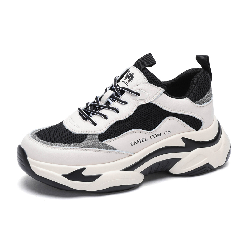 骆驼女鞋爆款透气真皮老爹鞋女ins潮款超火增高厚底百搭运动鞋子