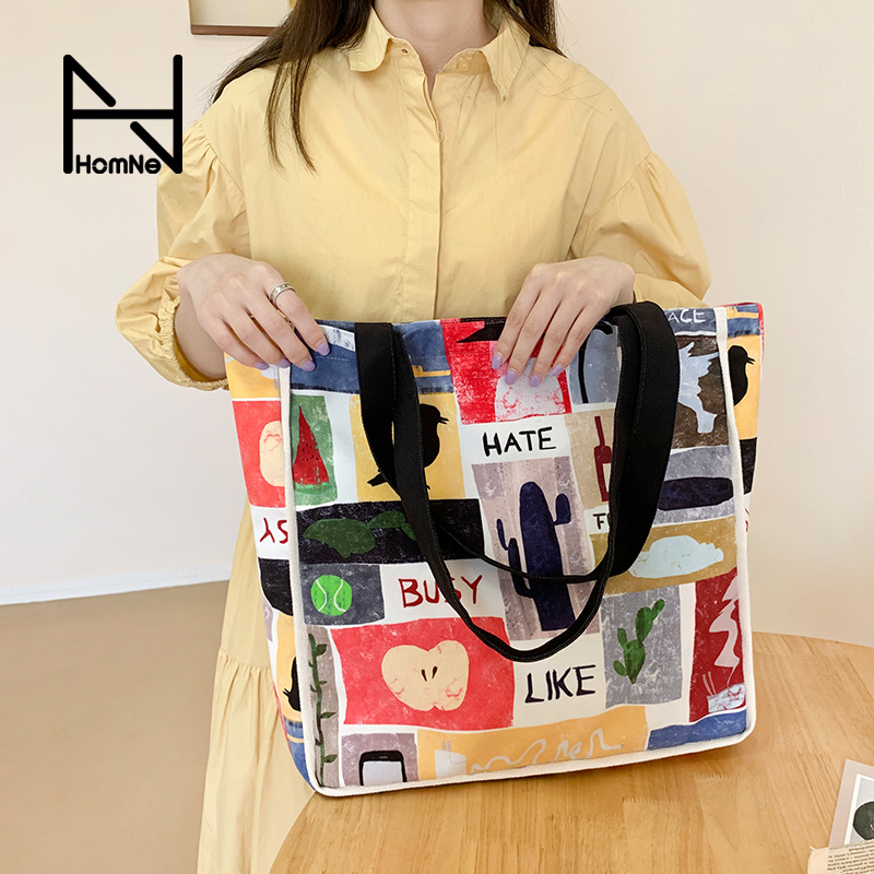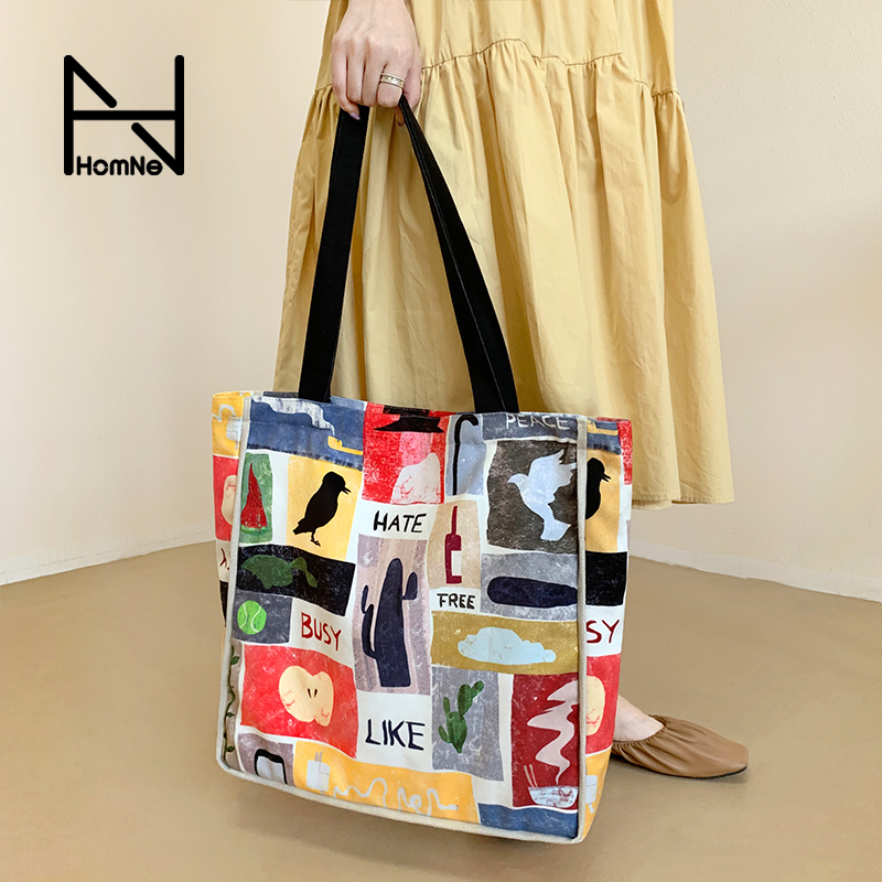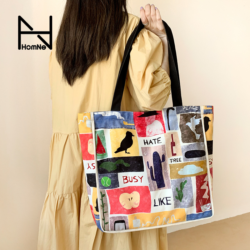 淘宝弘娜旗舰店优惠券,弘娜原创插画设计life色彩拼接背包优惠券,弘娜原创插画设计LIFE色彩拼接帆布包女单肩大容量白领学生背包W优惠券