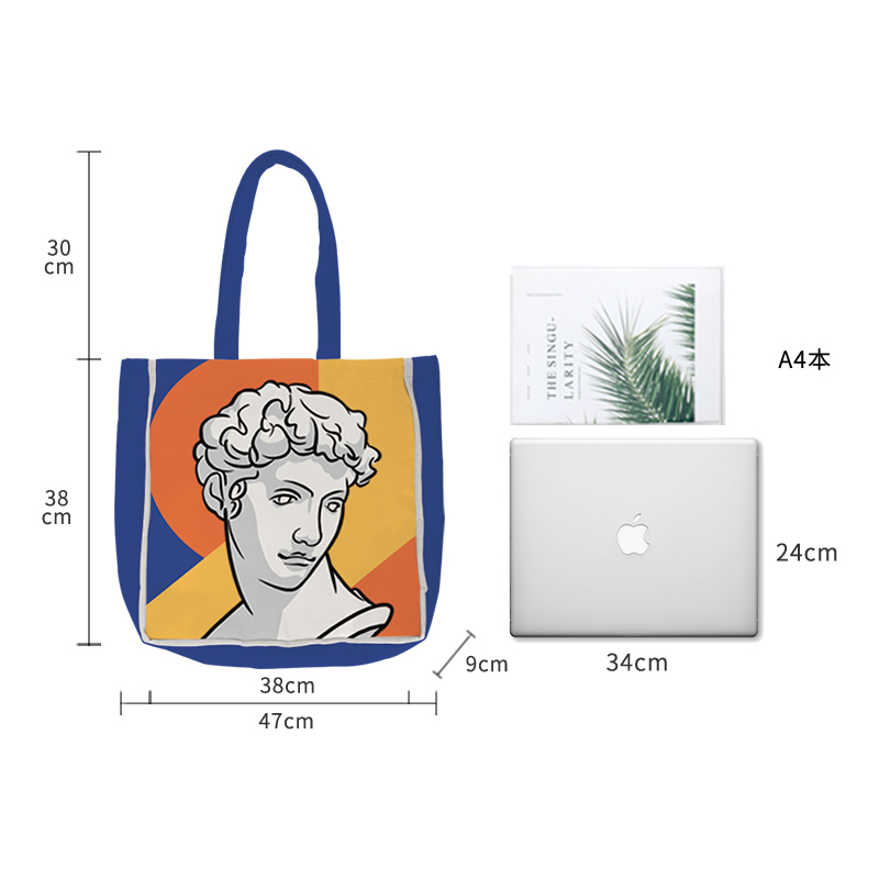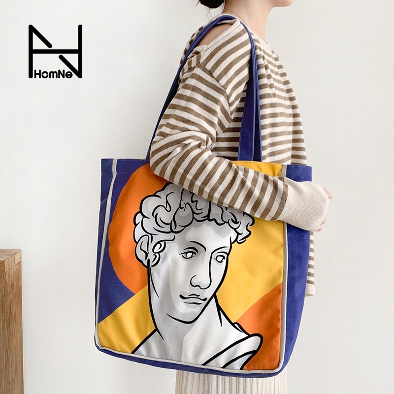 弘娜原创插画艺术石膏像线条色彩拼色单肩帆布包大容量欧美背包X