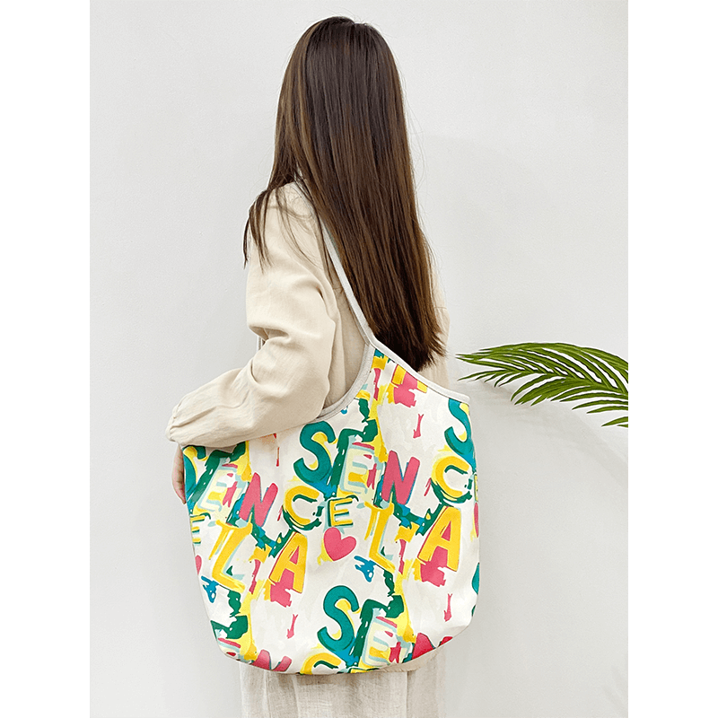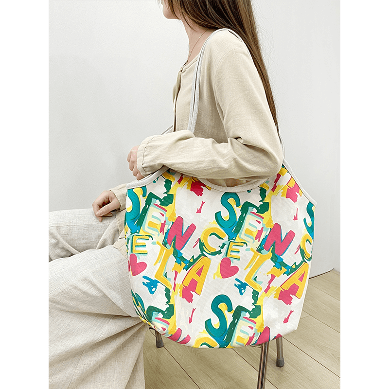 弘娜原创设计色彩涂鸦字母个性白领细肩带托特包大容量帆布包包hh