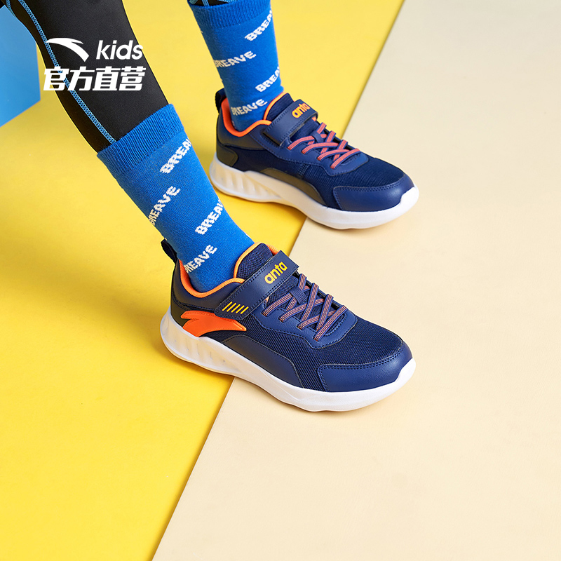 安踏儿童运动鞋男童鞋子2021春秋新款中大童革网跑步鞋透气跑鞋女