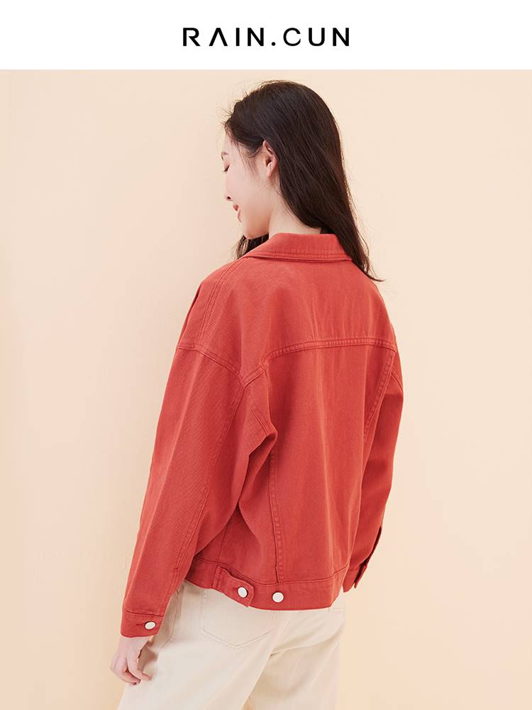然与纯砖红色牛仔外套女短款宽松时尚洋气ins小个子港风春秋上衣