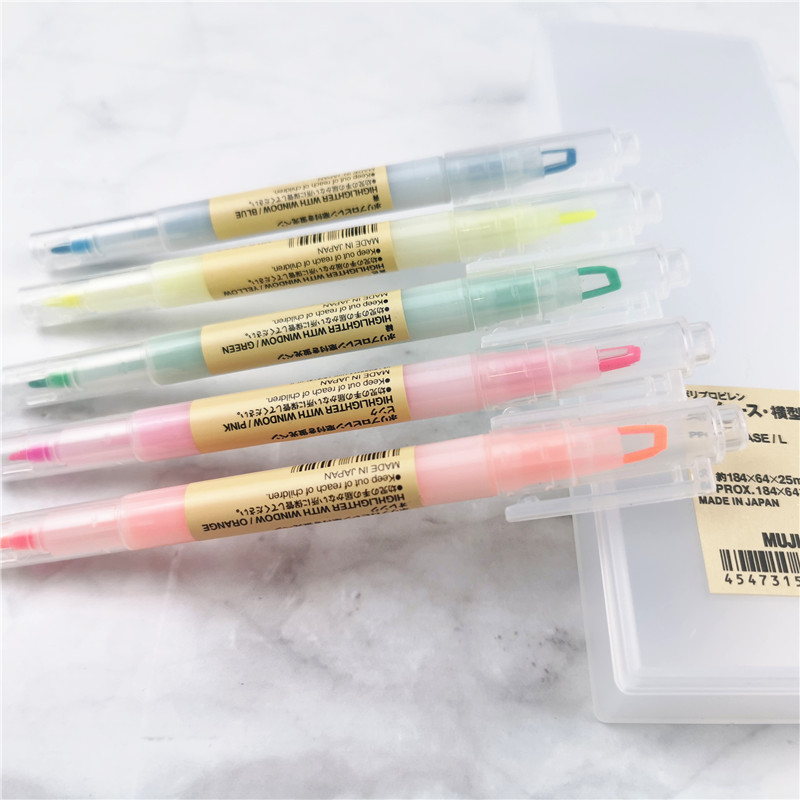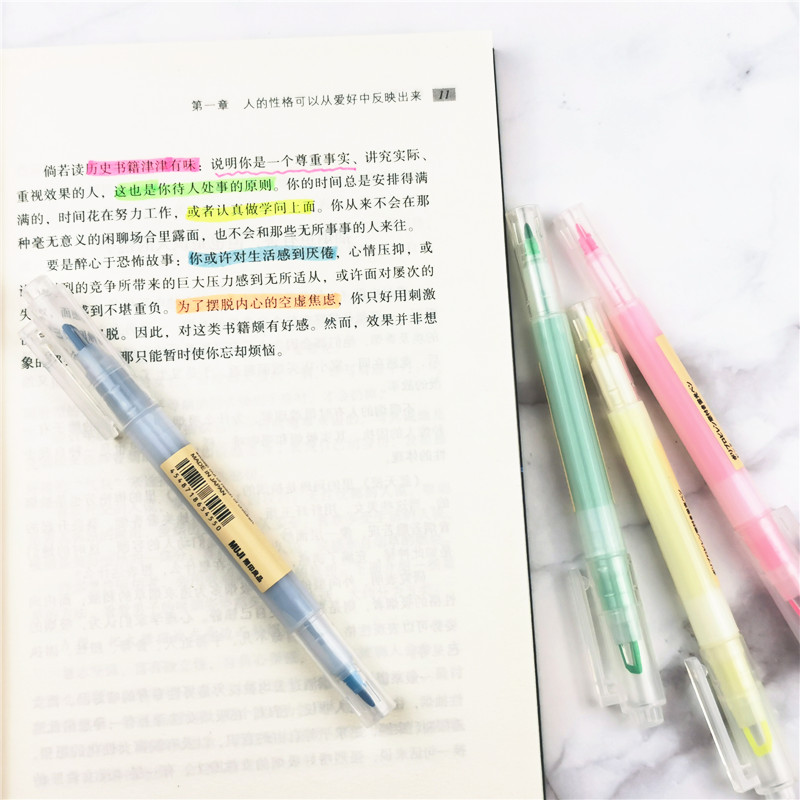日本无印良品MUJI文具双头荧光笔学生考试专用手帐标记彩色记号笔