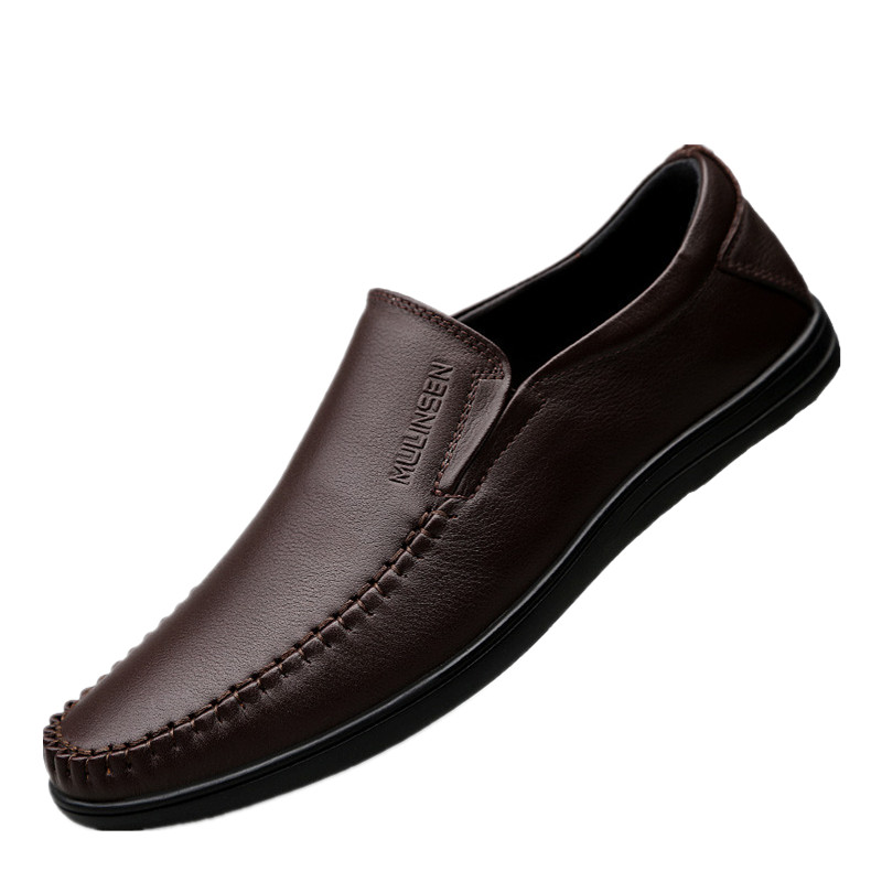 木林森真皮正品透气男鞋春秋日常休闲鞋牛皮爸爸鞋豆豆鞋懒人鞋子