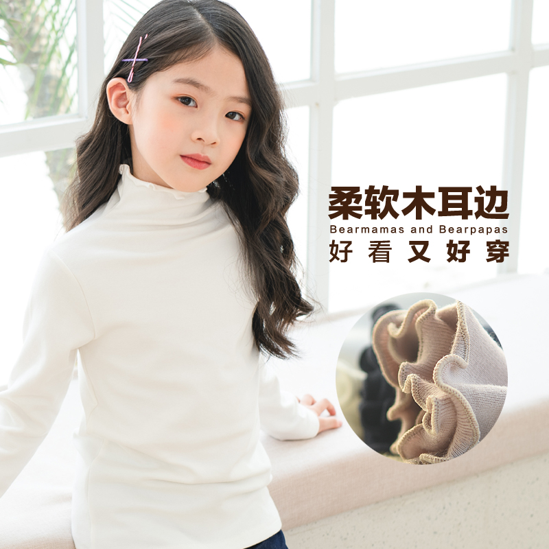 高领童装女童长袖洋气打底衫宝宝白色t恤中大童秋冬内搭纯棉上衣