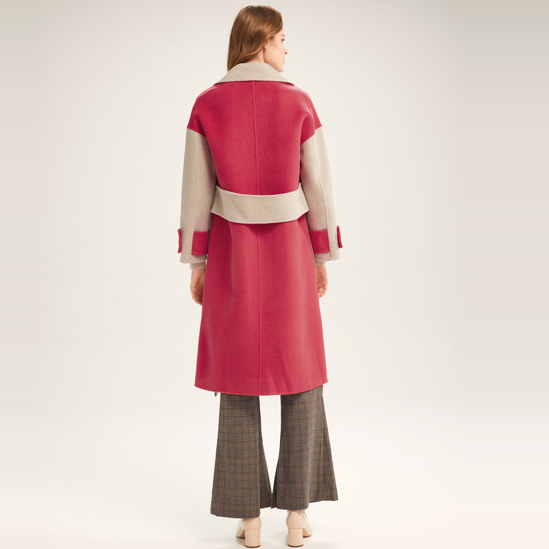 玖姿冬装新款双排扣羊毛拼接双面呢长款大衣女