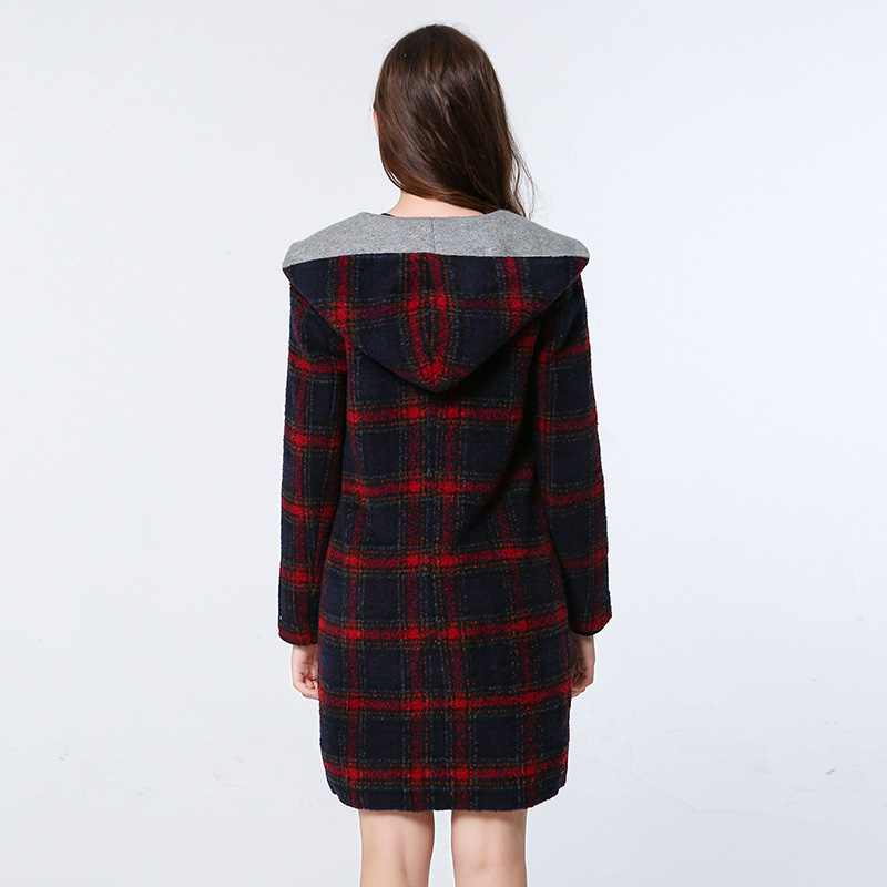 毛呢外套中长款新款秋冬女装韩版羊毛连帽宽松百搭格子大衣