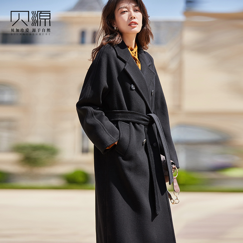 贝源明星同款驼色双面羊绒大衣女2020新款中长款过膝羊毛毛呢外套