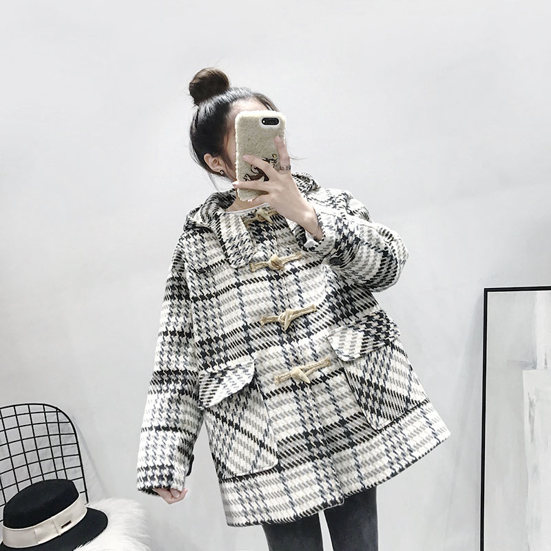 显瘦牛角扣毛呢外套女中长款2021年秋冬季新款小个子加厚呢子大衣